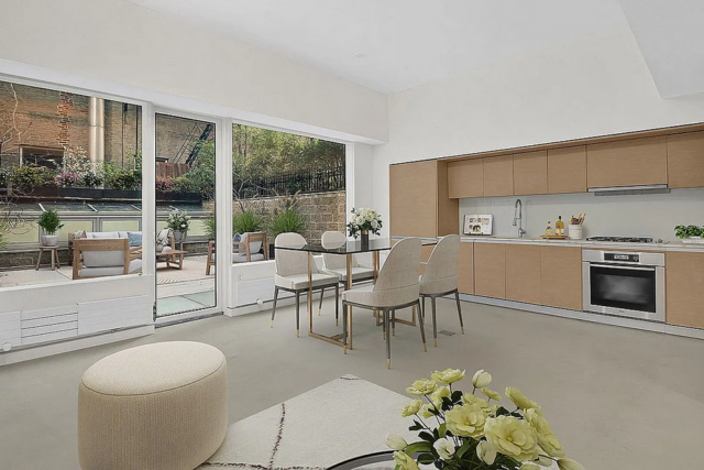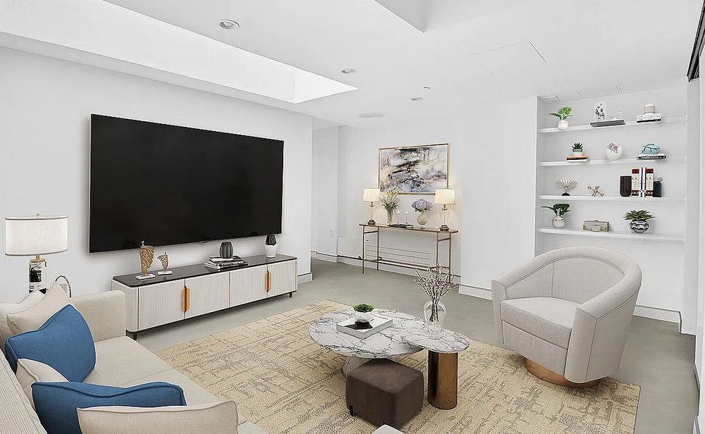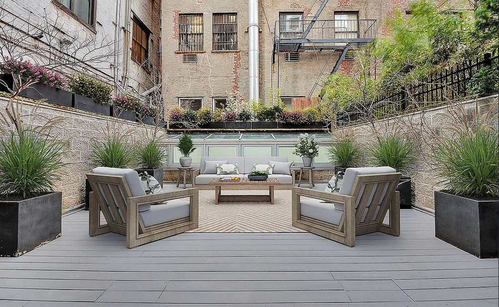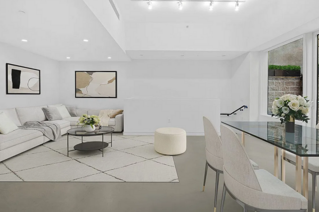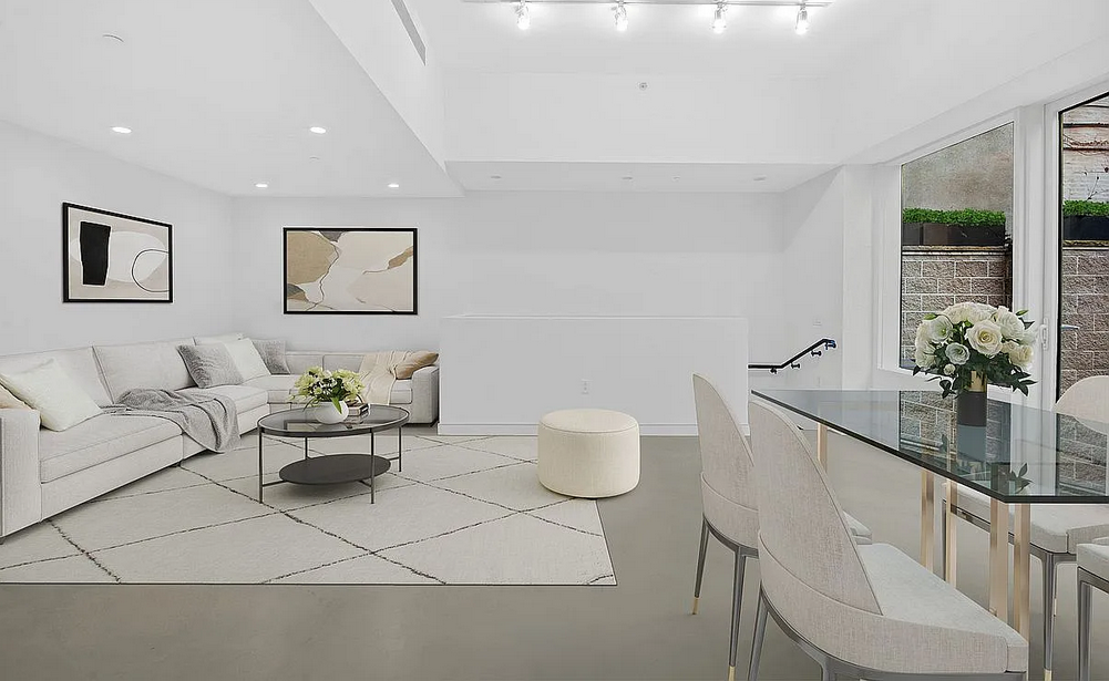 Best Priced Condo in West Chelsea High Line! Amazing Outdoor Space. Newly renovated 1693 SqFt (157m2) 2 BdRm, 1.5 bathroom duplex residence on the ground floor and cellar level. Huge 762 SqFt (71 m2) private deck (with irrigation system). Polished concrete flooring with micro-topping over-lay. Bosch Washer Dryer in Apt. CCs include WiFi & cable tv. 9’4″ ceilings New staircase clad in white oak Floor-to-ceiling windows on upper level Both bedrooms & media room on lower level Many skylights Lualdi frameless white oak doors Custom Italian kitchen cabinetry Concealed Sub-Zero refrigerator and Bosch dishwasher Miele stainless steel and black glass oven Custom bathroom fixtures by Rifra Boutique condominium ideally located right next to The High Line, between the Meatpacking District & West Chelsea, with over 250 contemporary art galleries nearby.